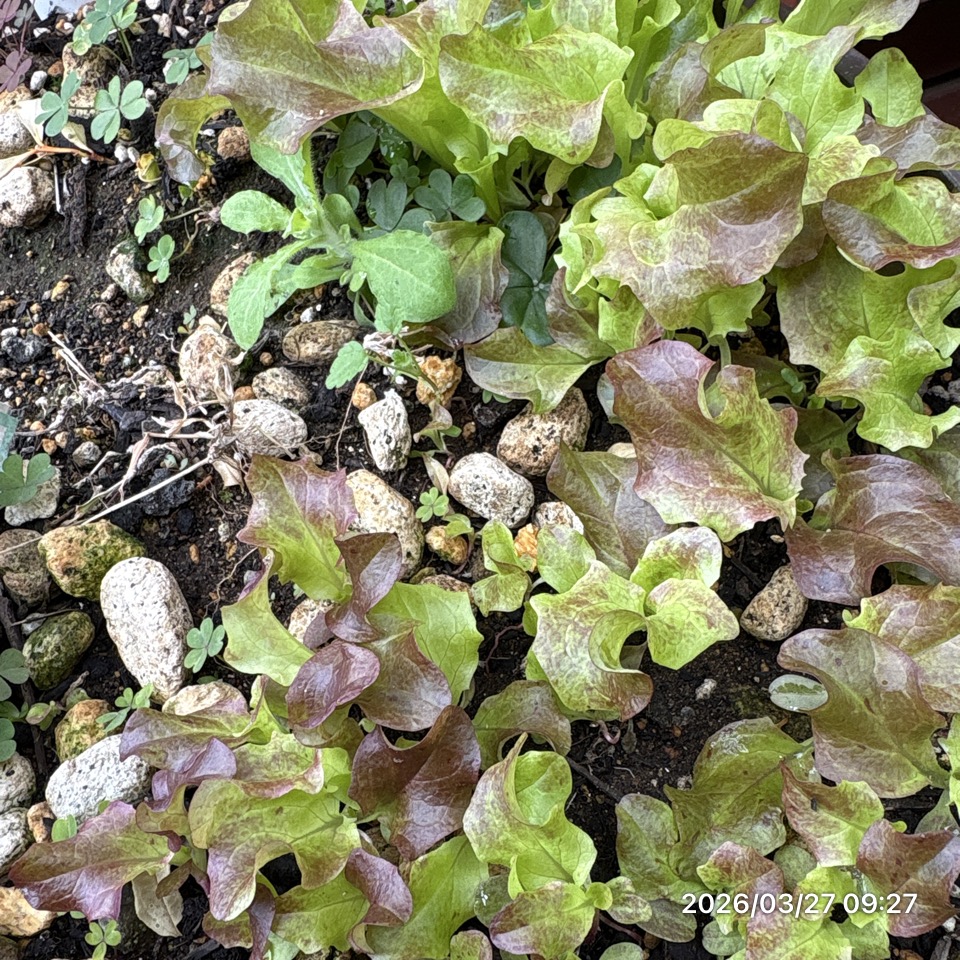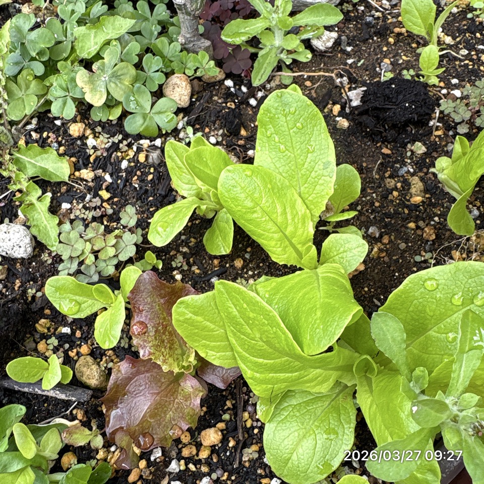 冬にけんちゃんと一緒にまいたタネからレタスの芽が出てきてしばらく経った。🥬