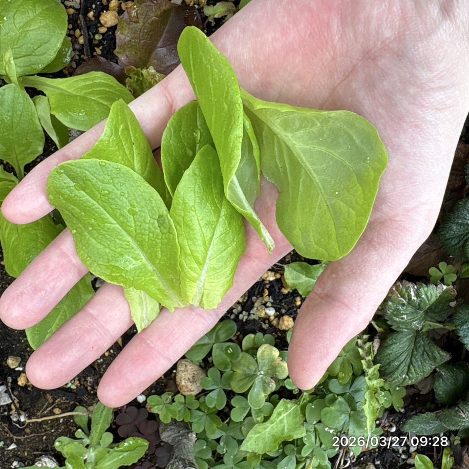ベビーレタス収穫、けんちゃんが欲しいのは…