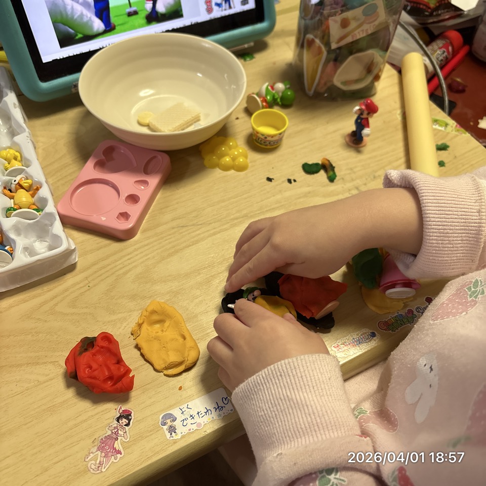 けんちゃんの転園|3回目の保育園、スーパーマリオのグッズ、慣れ保育、マリオのフィギュアと粘土遊び
